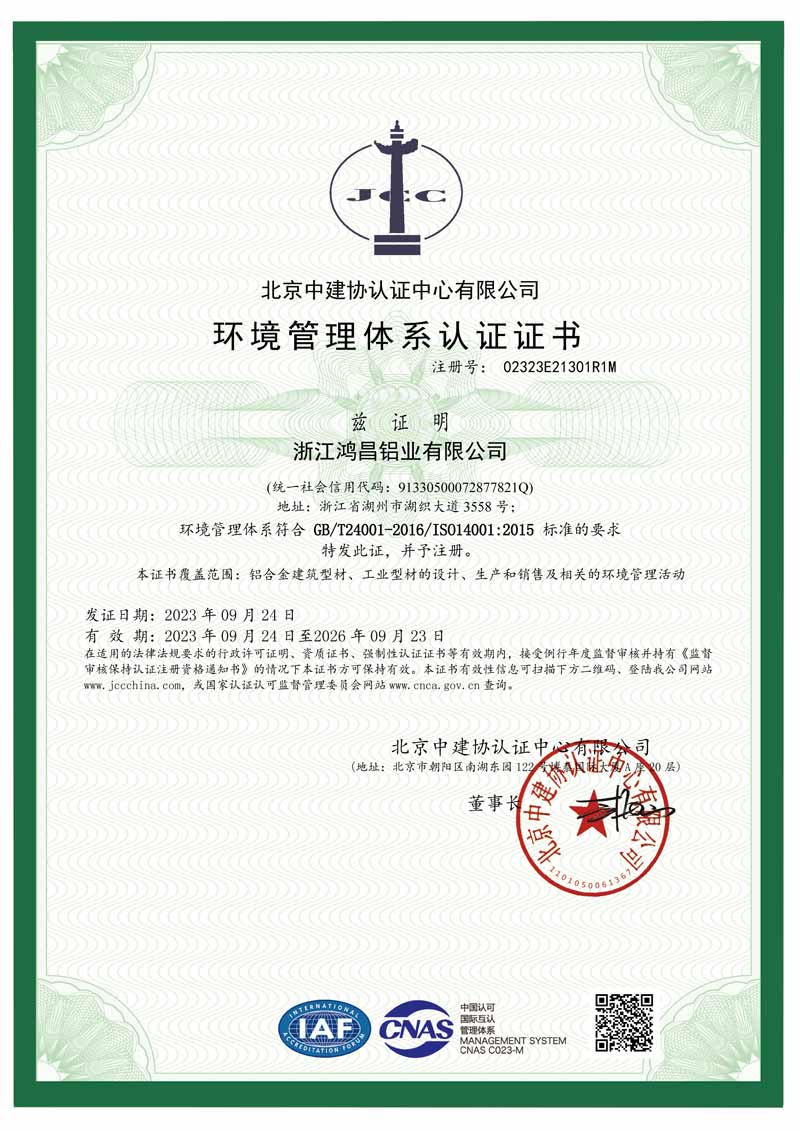 環境管理體系認證證書