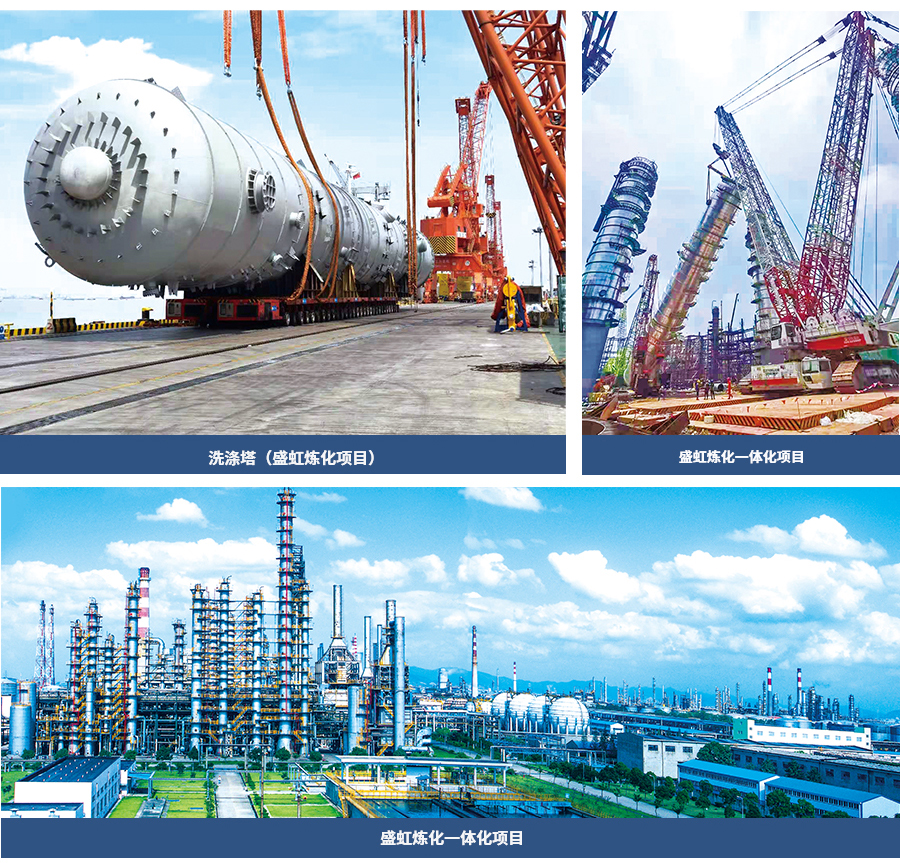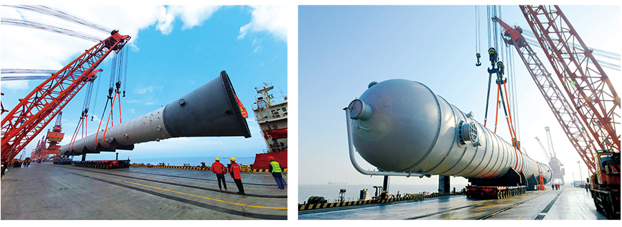 恒逸文萊石化項目是“一帶一路”的標志性項目,公司同時參與了恒逸文萊石化一期、二期項目的核心關鍵設備,主要有抽余液塔、二甲苯塔、常壓塔、減壓塔等大型超限設備12臺,總金屬重量近5000噸。